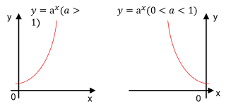 지수함수와 역함수 관계로서 y = x에 대칭인 그래프